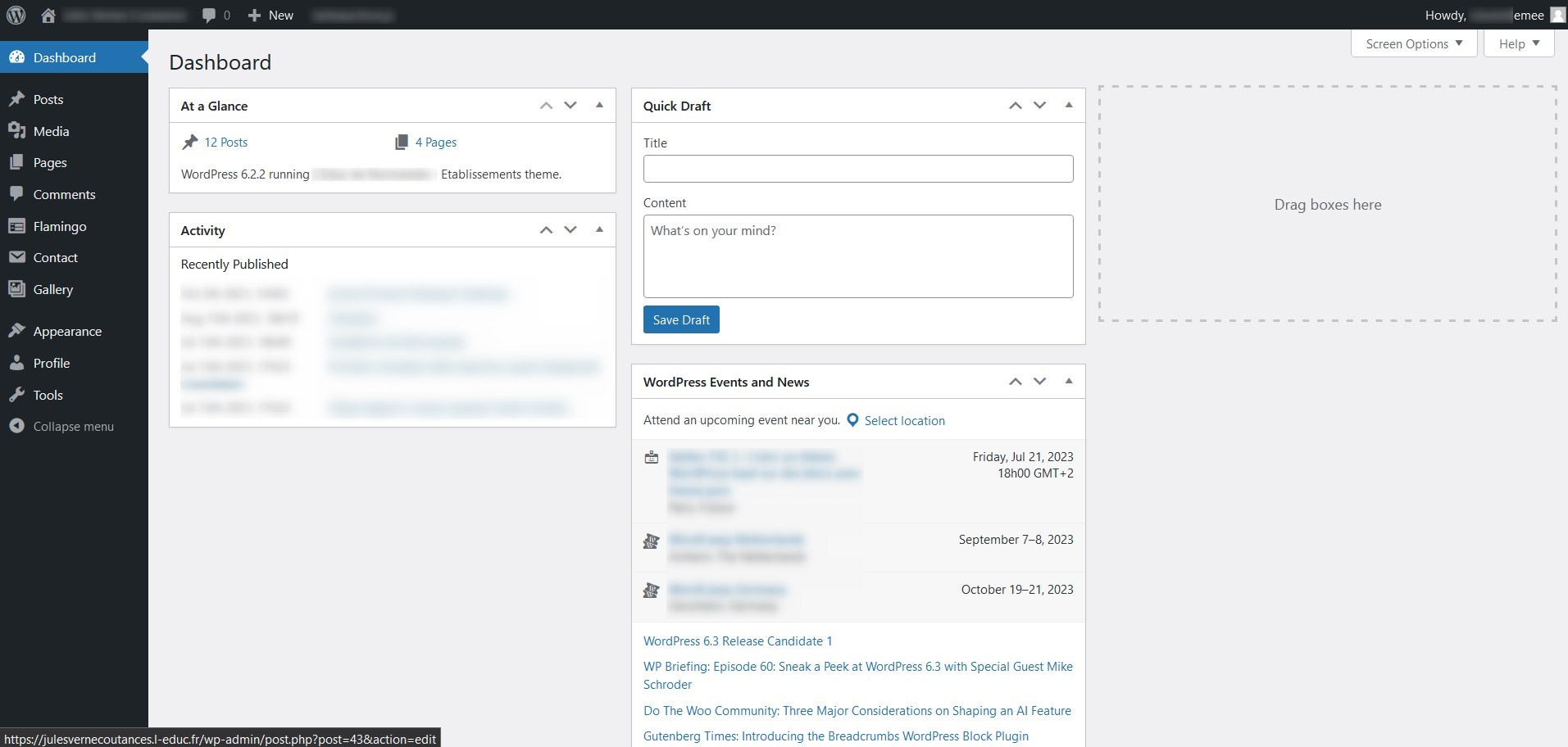 ⚠️ Nota: la edición Wordpress de un sitio sólo es posible al día siguiente de su creación para los administradores locales. La creación de cuentas en Wordpress para los administradores y la transferencia de datos con el Entorno digital se hacen durante la noche.