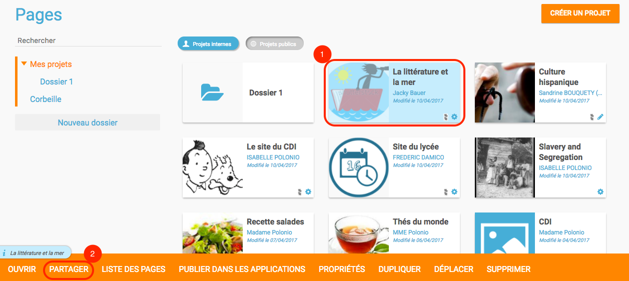 - 2. Cliquez sur le bouton Partager (2)