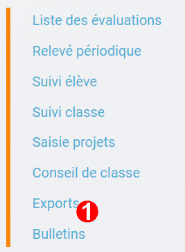 1. Les exports LSU (bilans de fin de cycle et bilans périodiques) sont disponibles via le menu Export.
