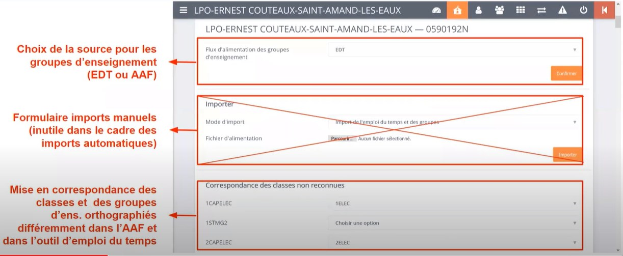 En console, choisissez la source pour les groupes enseignants et la mise en correspondance des classes.